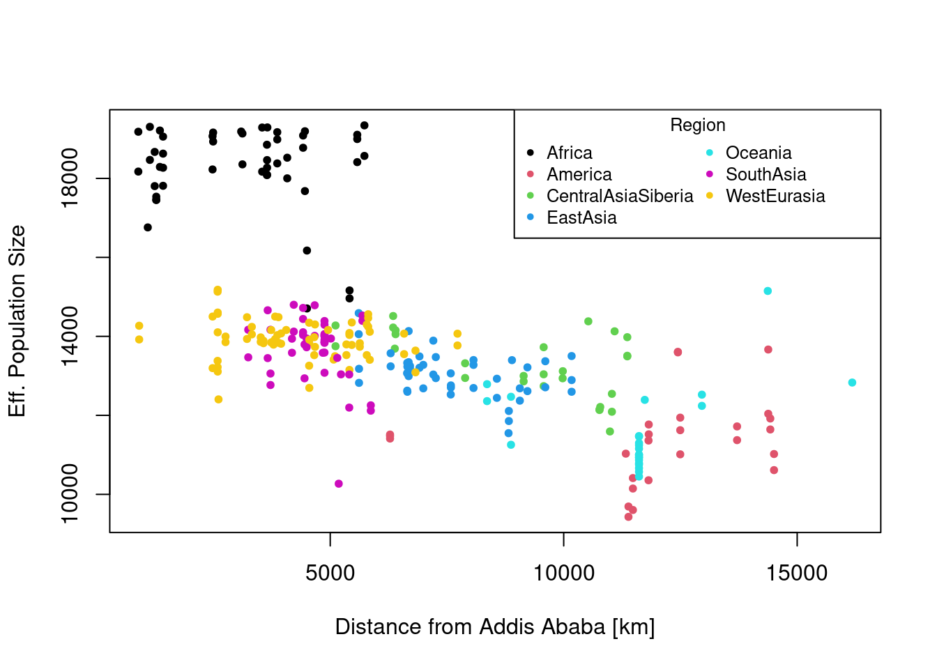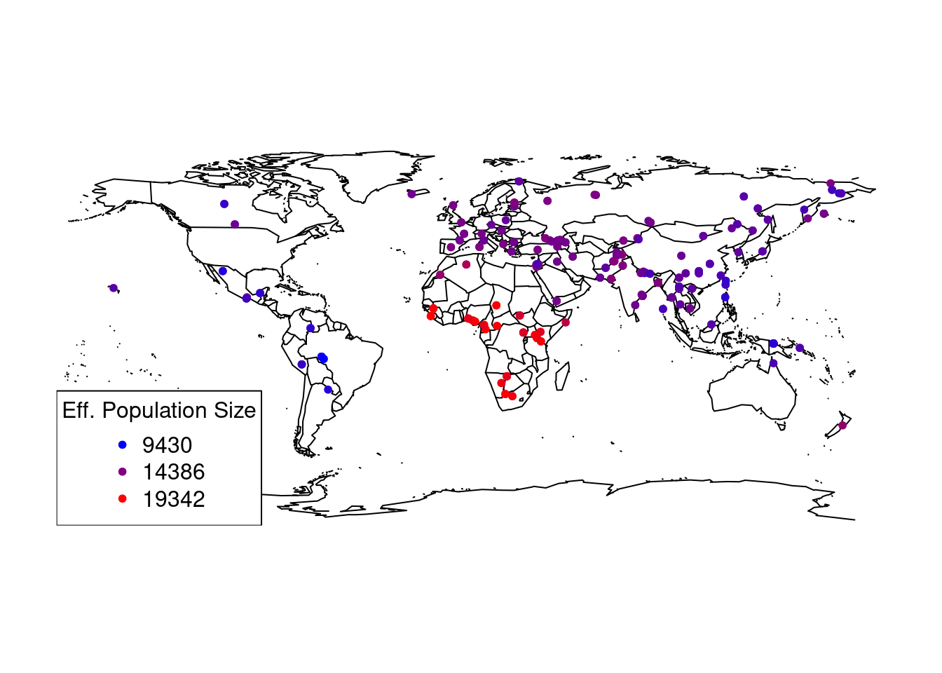 which clearly shows again a spatial pattern with Africa having the highest effective population size.