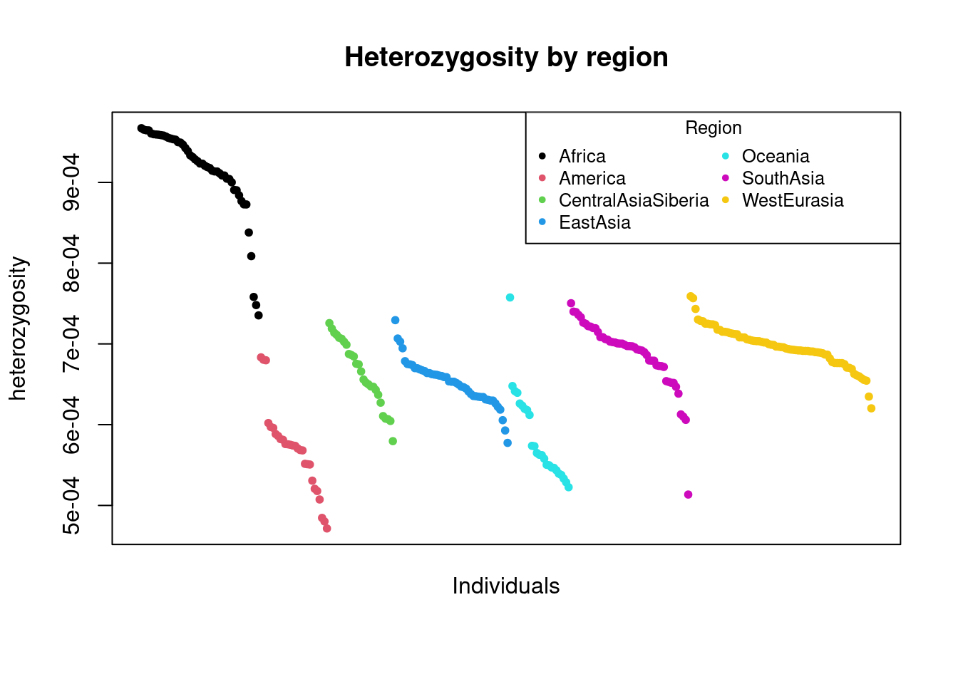 main = "Heterozygosity by region")